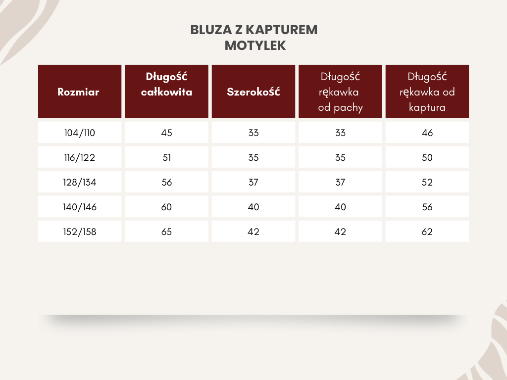 Rozmiary: 104/110; 116/122; 128/134; 140/146; 152/158