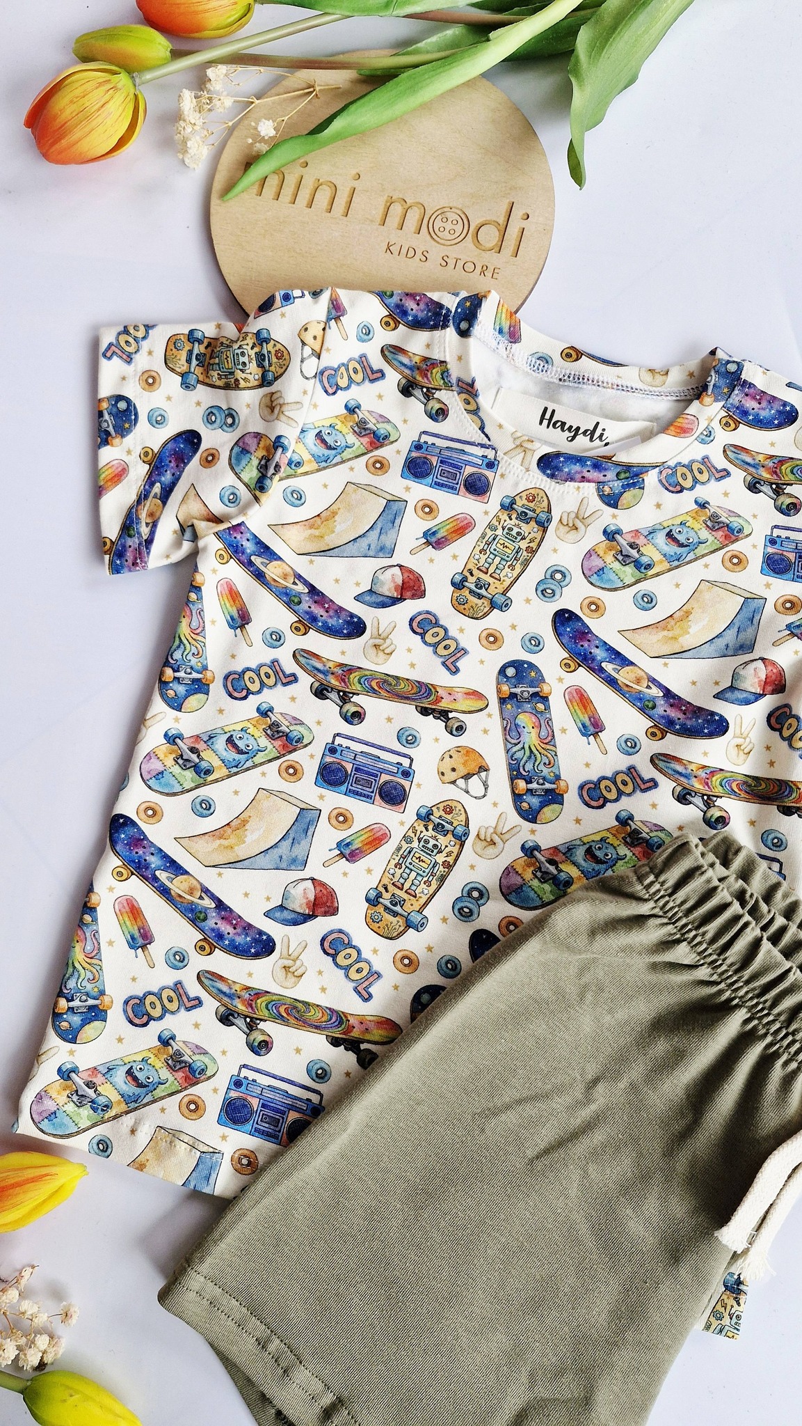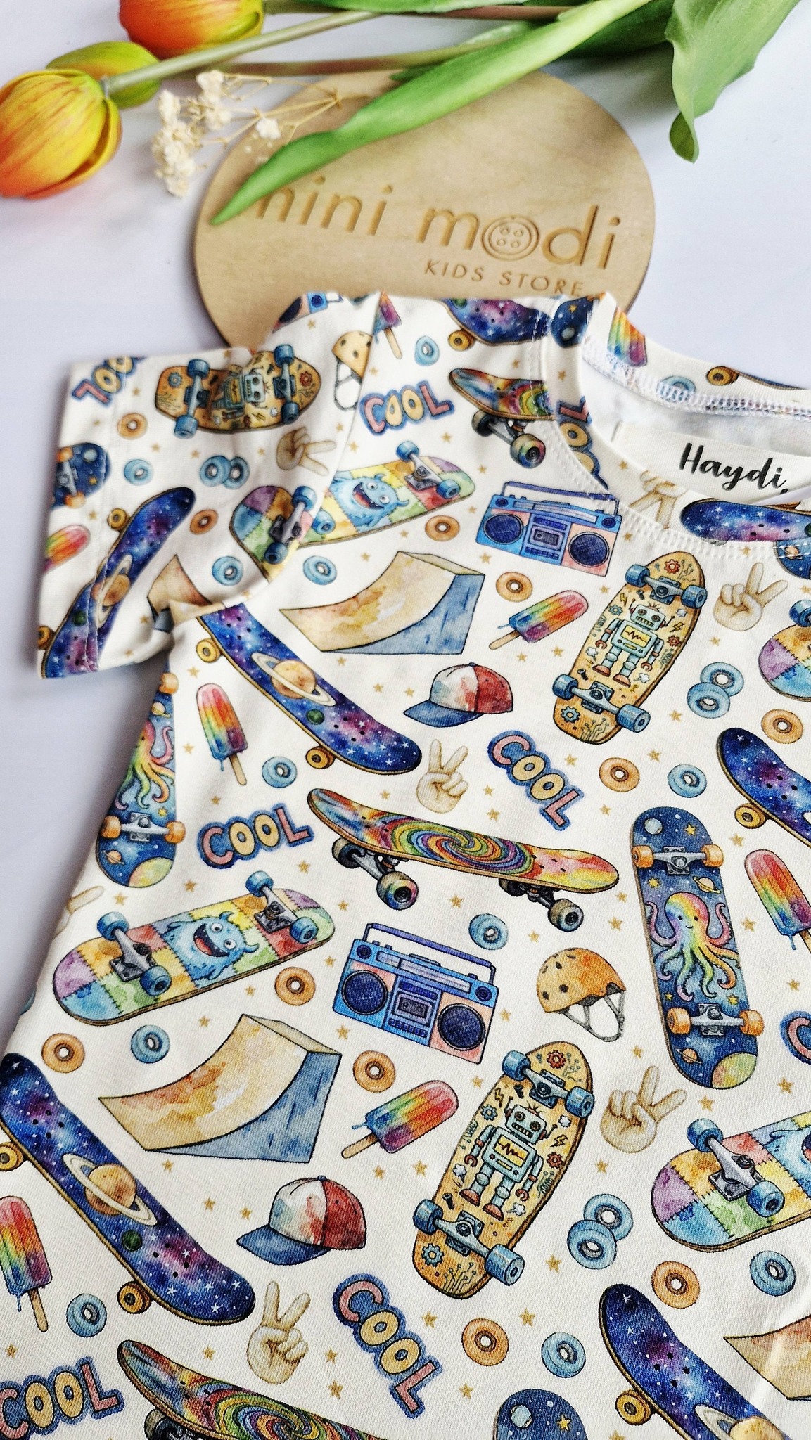 Bawełniane bluzeczki chłopięce z krótkim rękawkiem w deskorolki Haydi