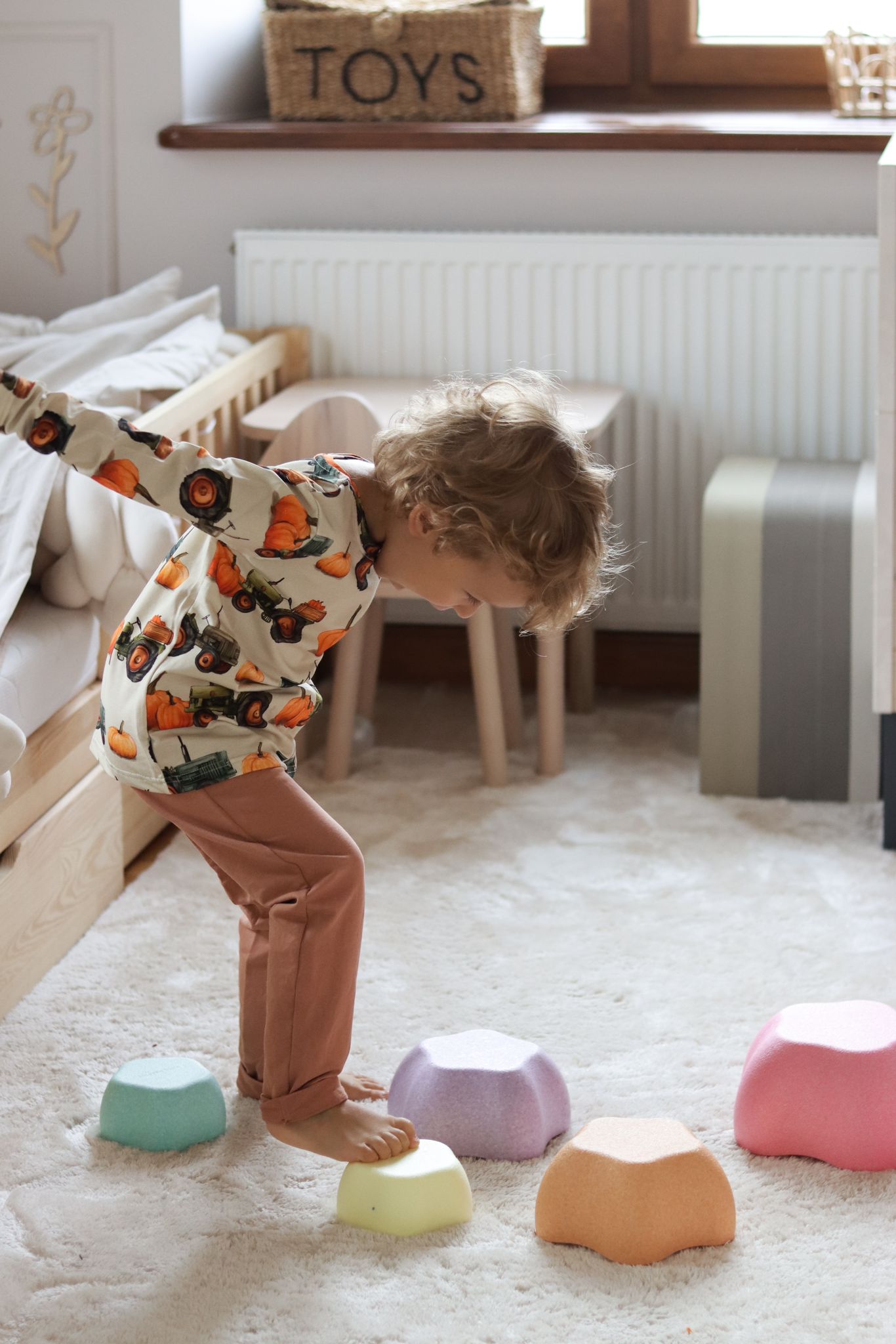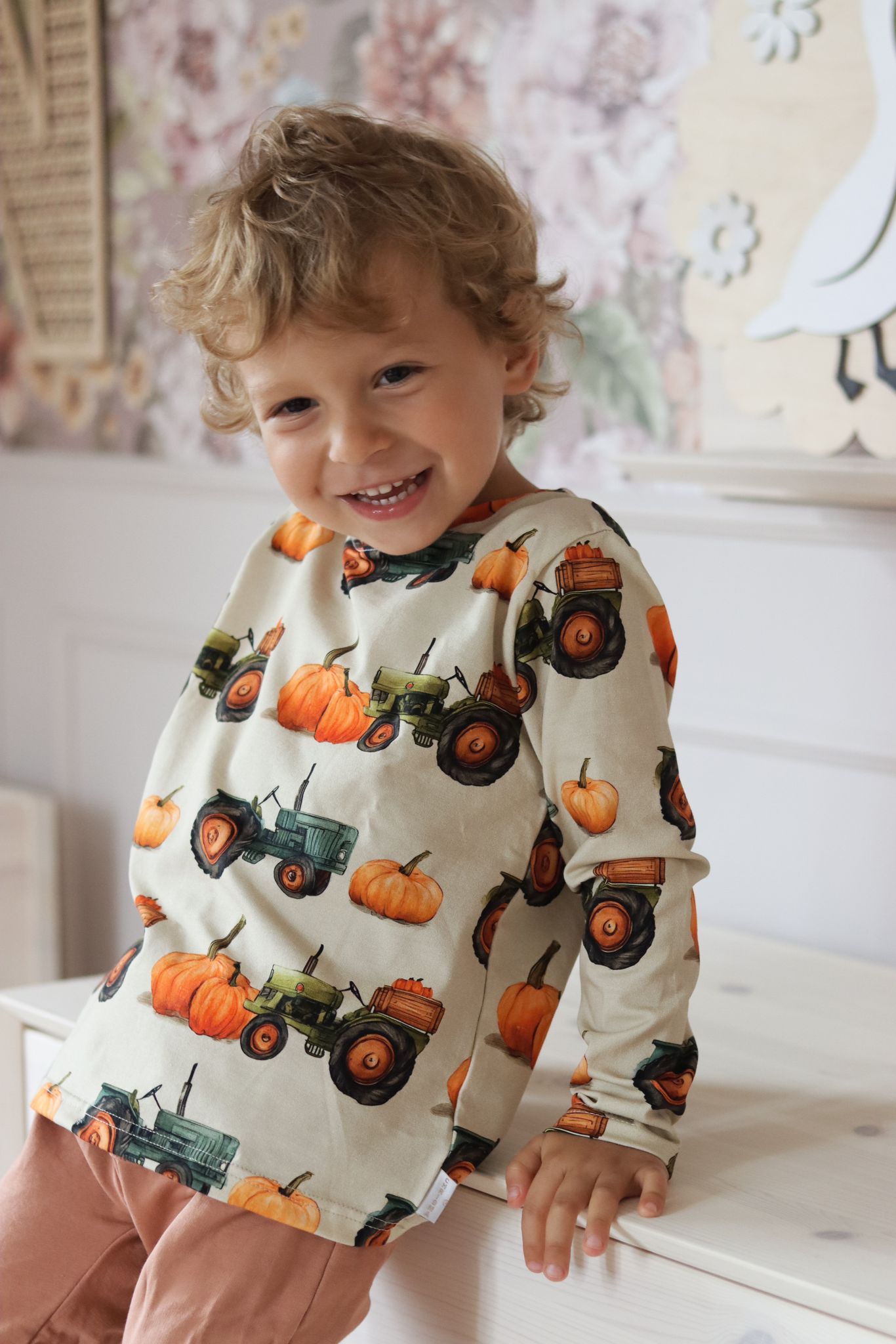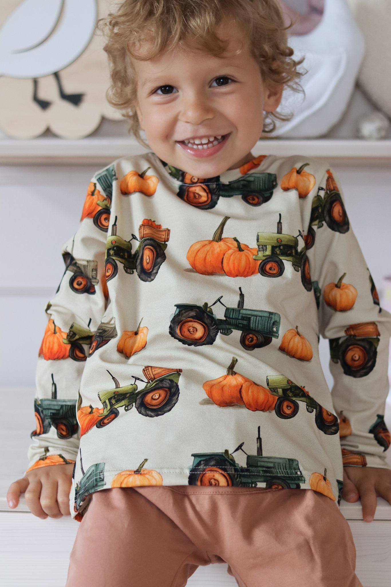 Bluzka chłopięca z długim rękawkiem we wzór DYNI i TRAKTORÓW.
