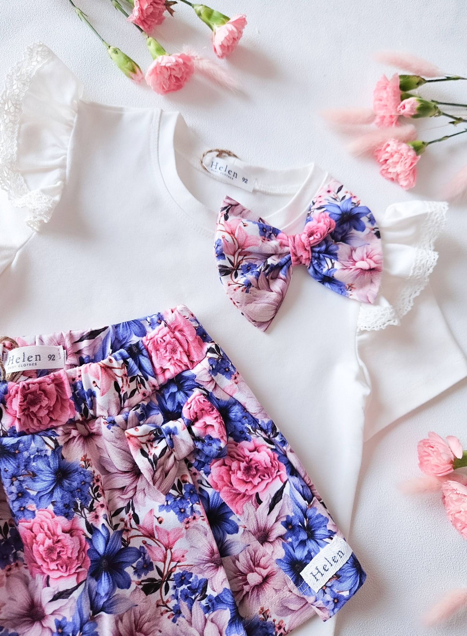 Prześliczne bluzeczki w kolorze ecru z bawełny dla dziewczynki. Bluzeczka z krótkim rękawkiem i ozdobną koronką. Idealna stylizacja na wiosnę/lato.
