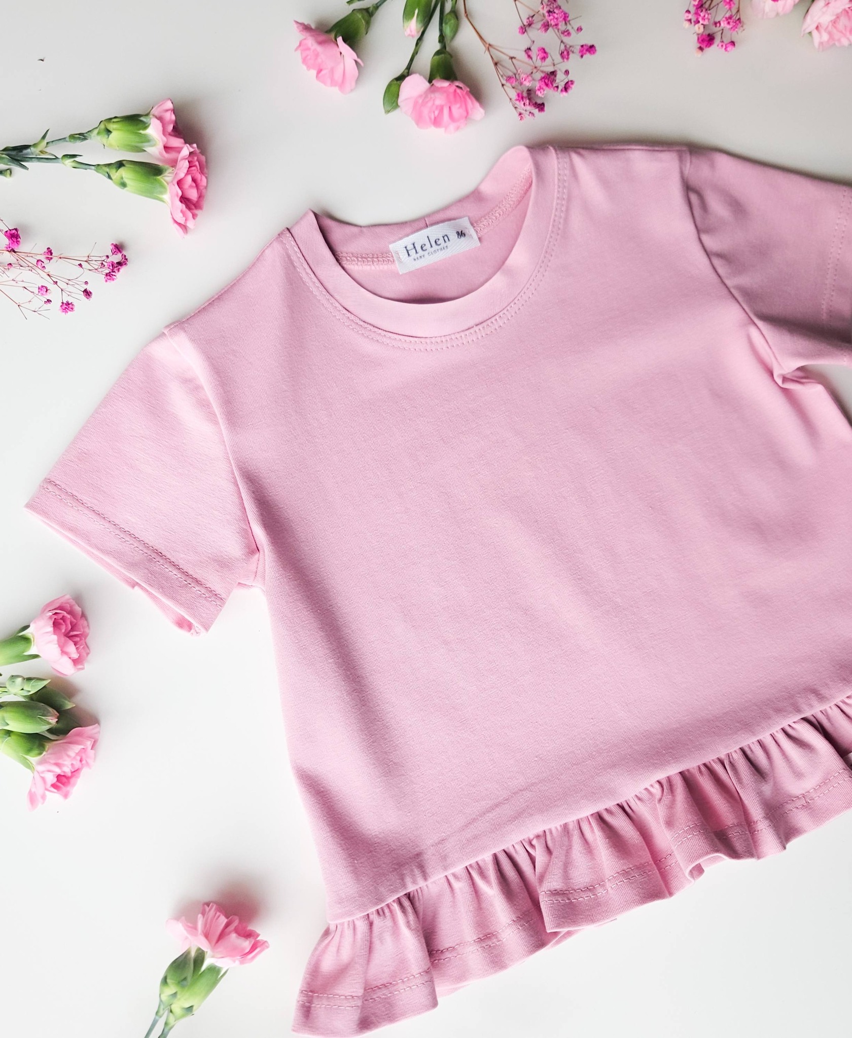 Bluzka oversize z krótkim rękawkiem. Ozdobna falbanka. Kolor: PUDER RÓŻ 😉