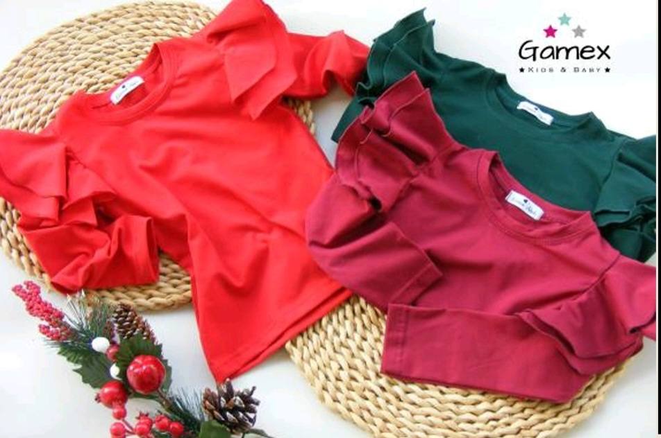 Świąteczne kolory, podwójna falbana na ramionach oraz wykonanie z dbałością o detale