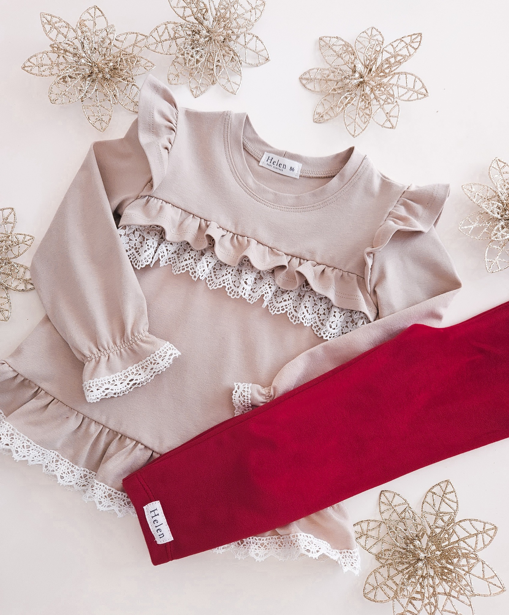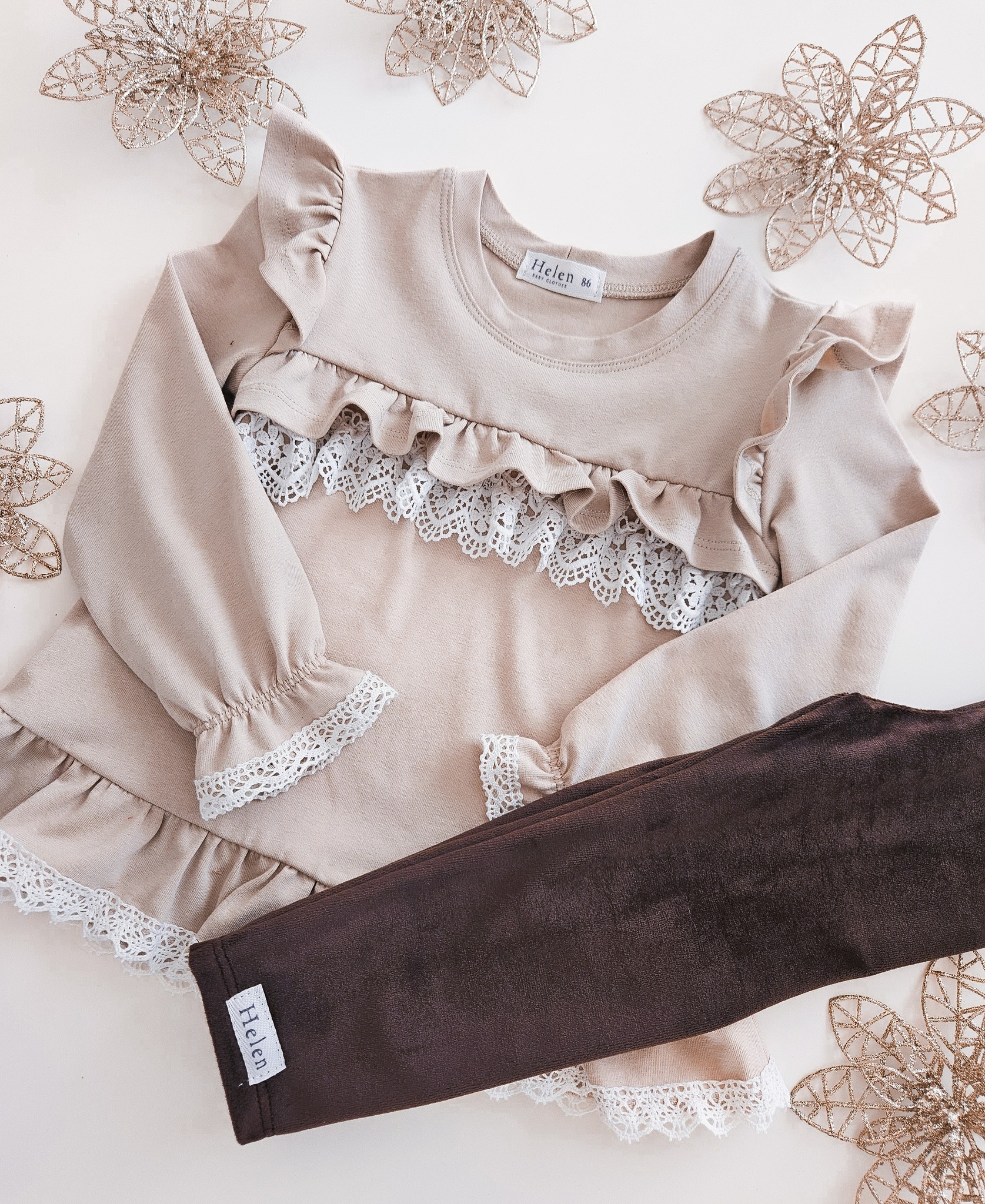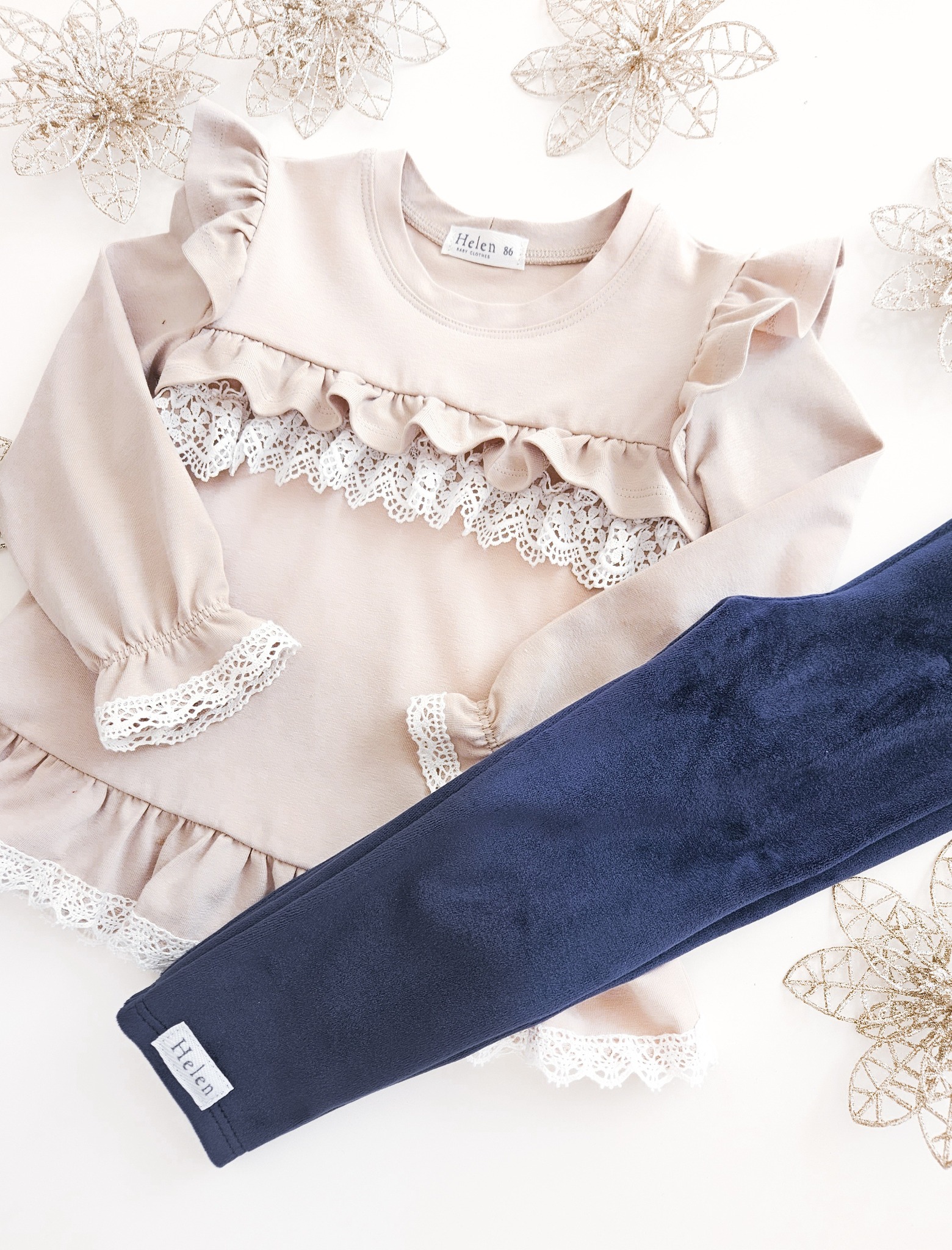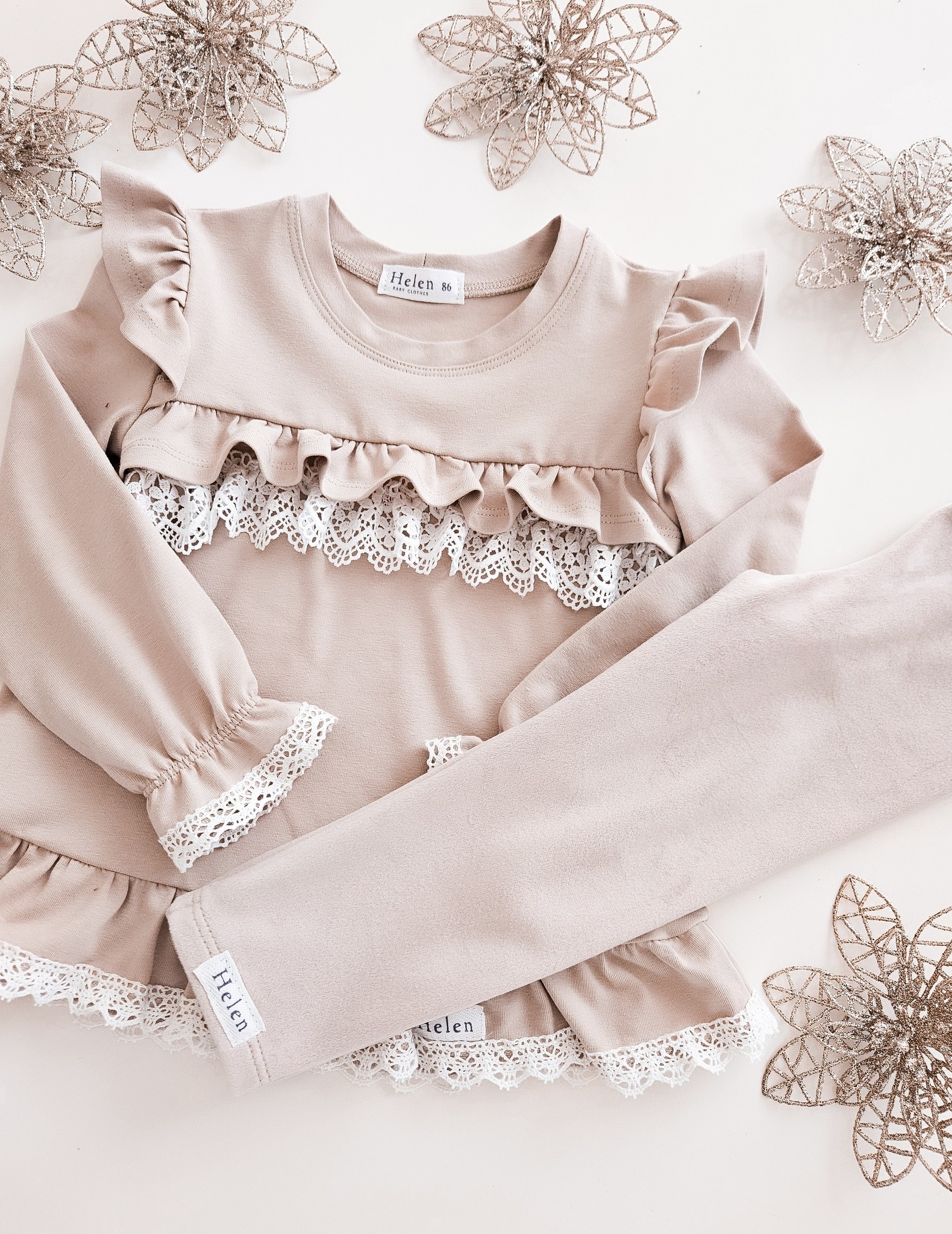 Bluzko – tunika z koronką dla dziewczynki beżowa