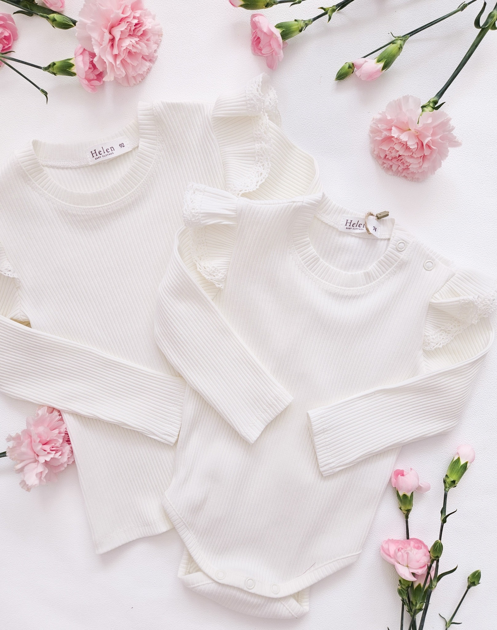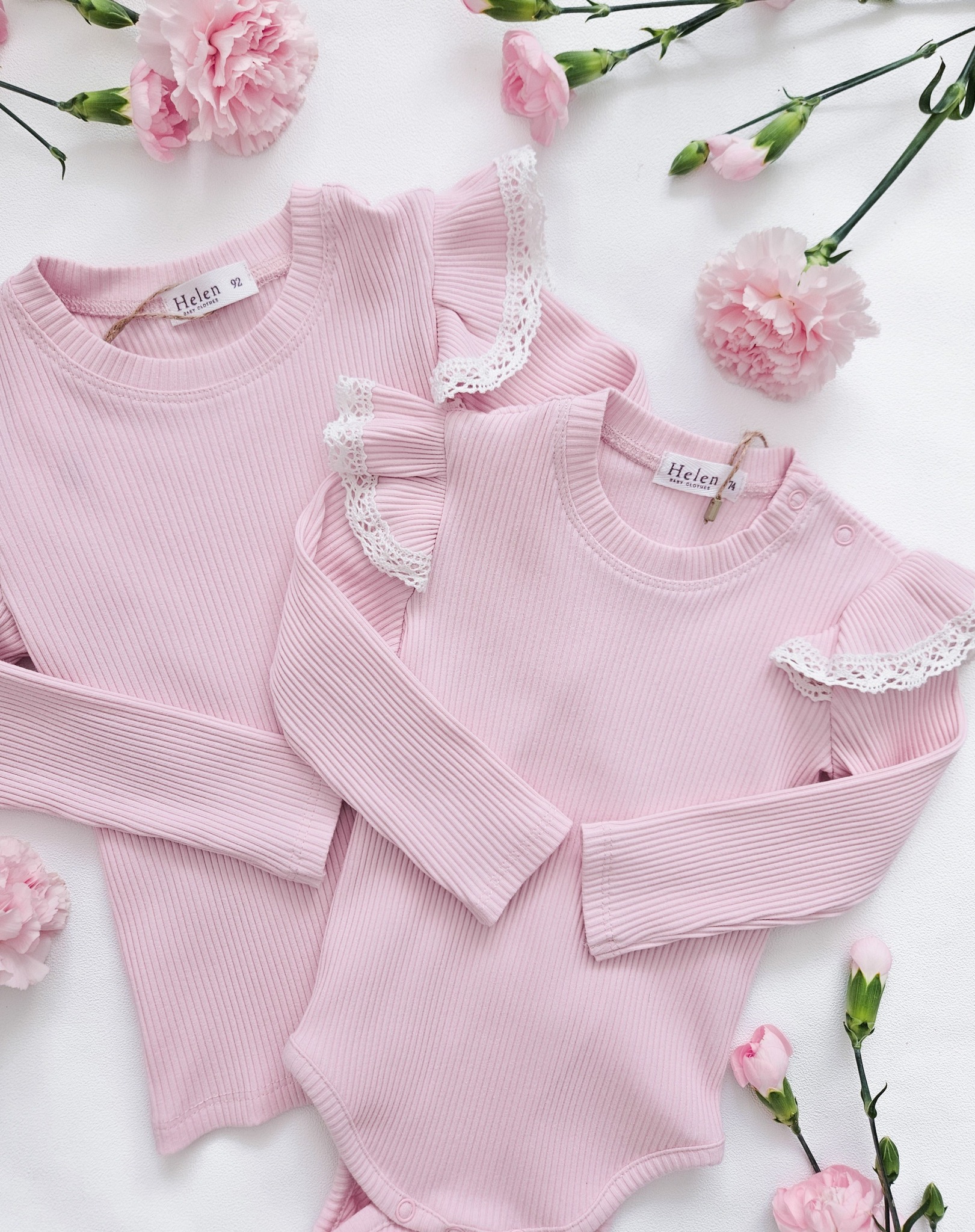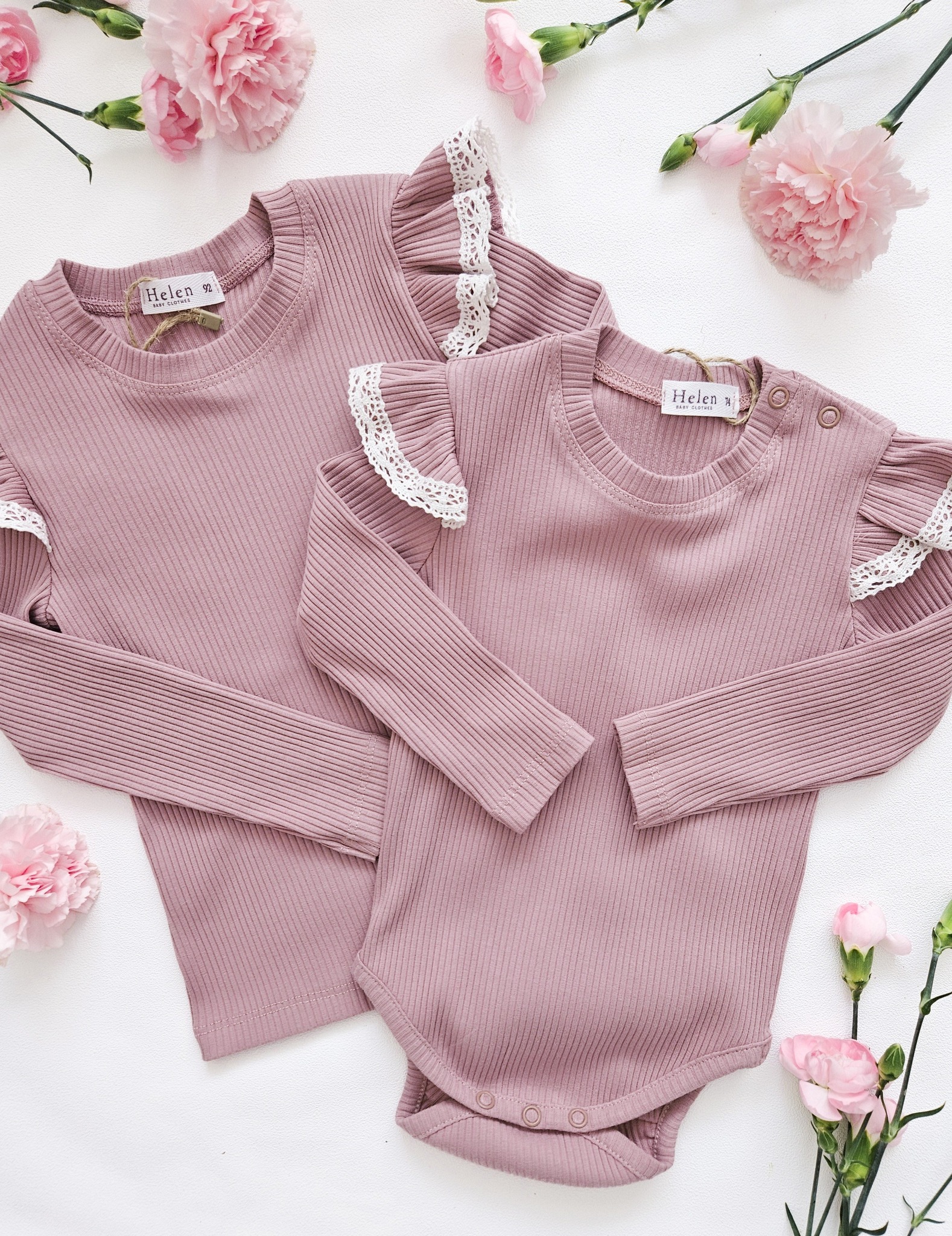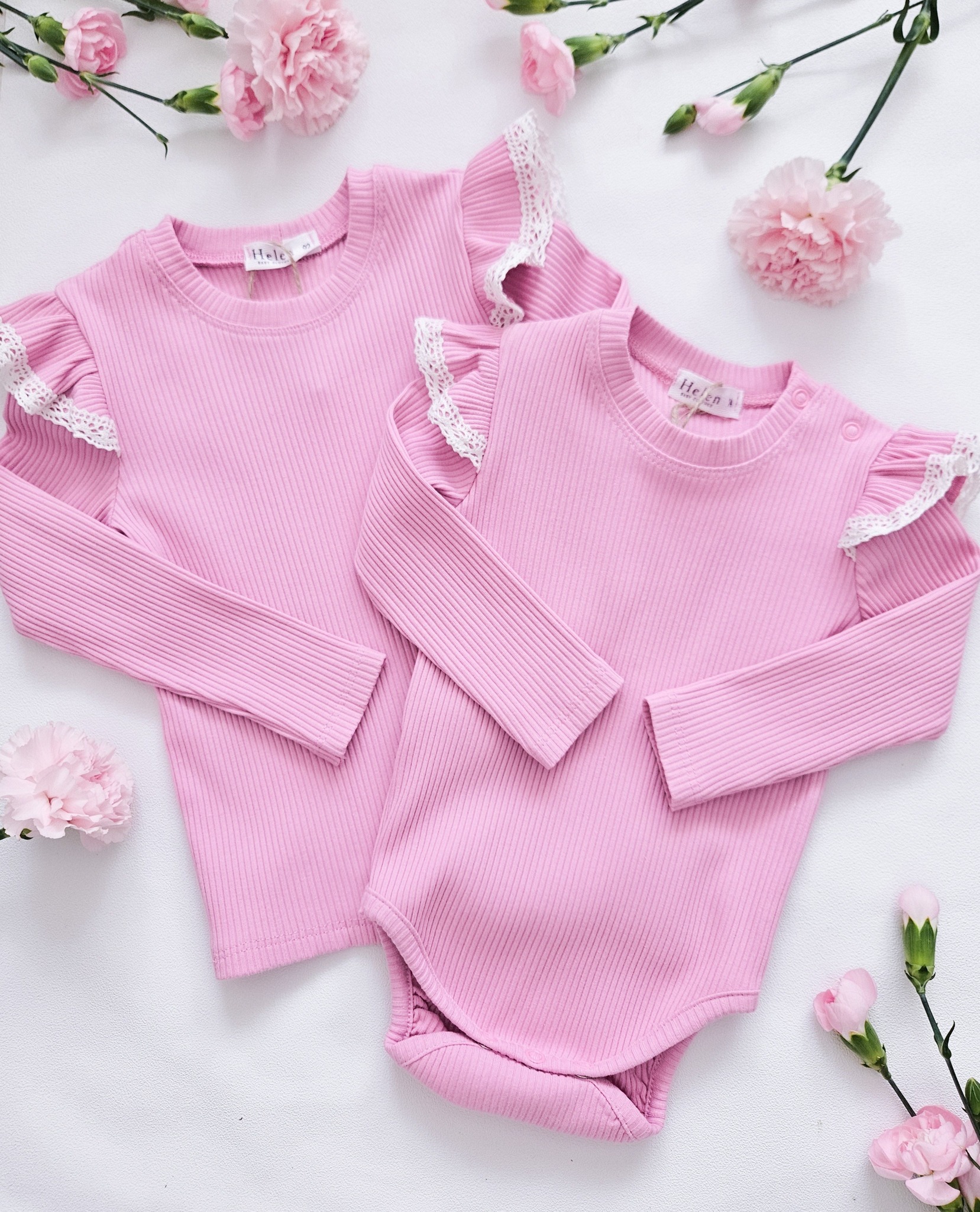 Prześliczne body i bluzeczki dla dziewczynki z bawełny typu prążek. Rękawki ozdobione motylkiem orz koronką. Idealna stylizacja na jesień.