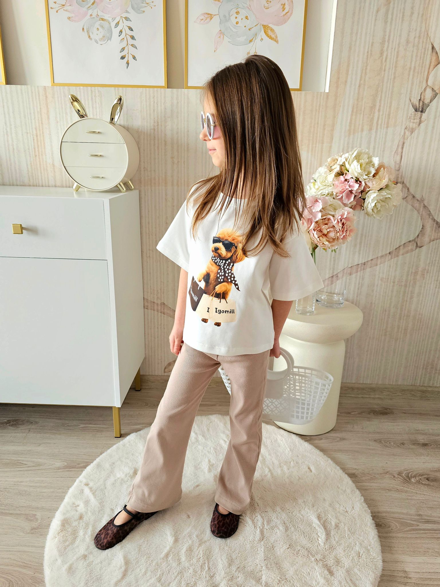 Dzwony dla dziewczynki w kolorze beżowym z bawełny typu prążek. Getry idealne do wiosennych stylizacji.