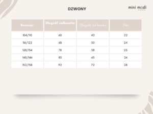 Rozmiary: 104/110; 116/122; 128/134; 140/146; 152/158