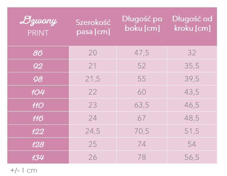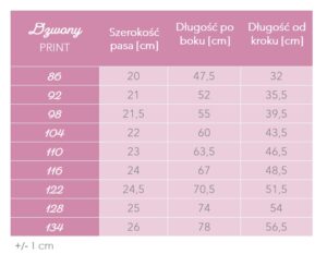 | Rozmiar | 86, 92, 98, 104, 110, 116, 122, 128, 134 |