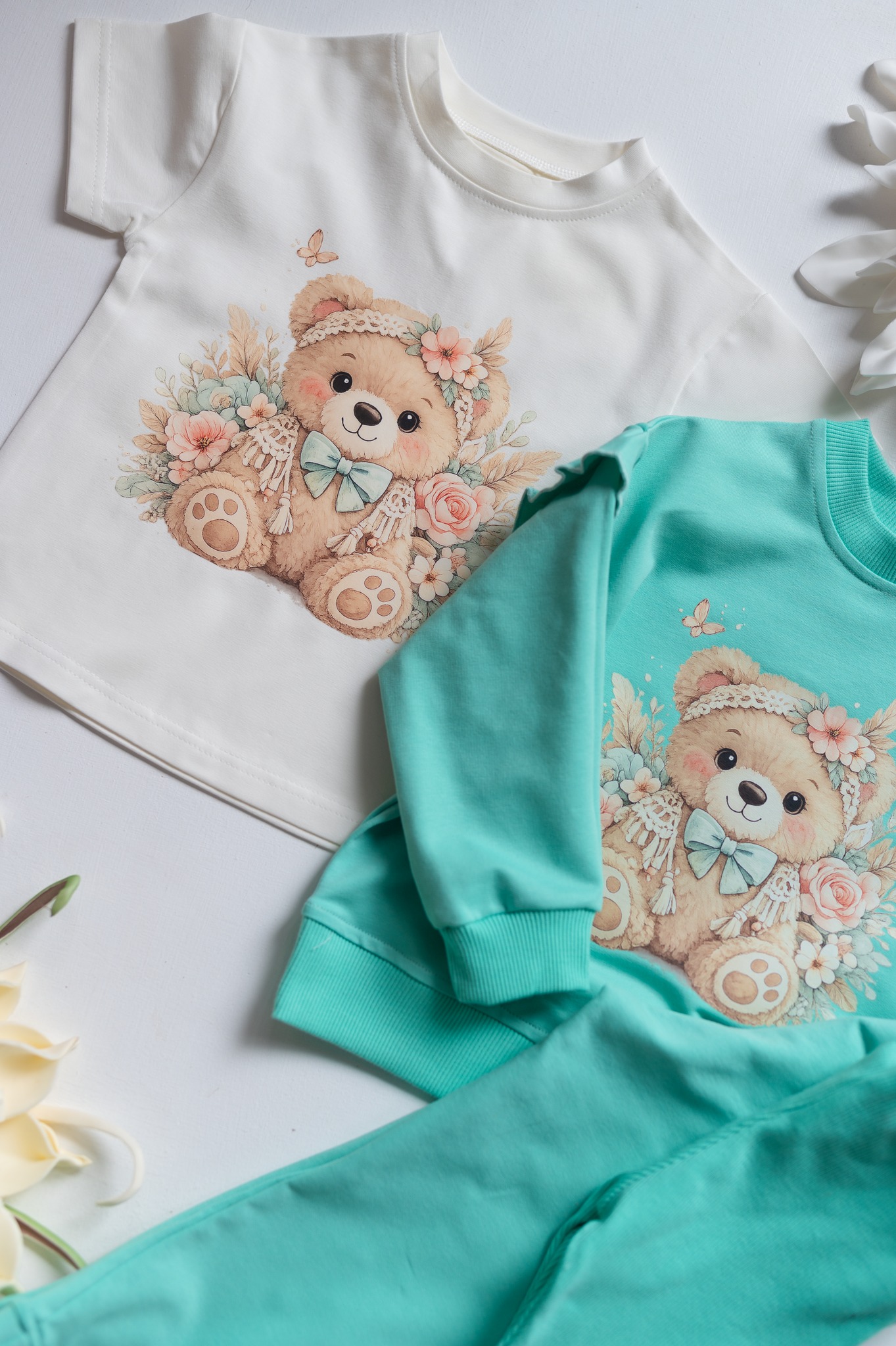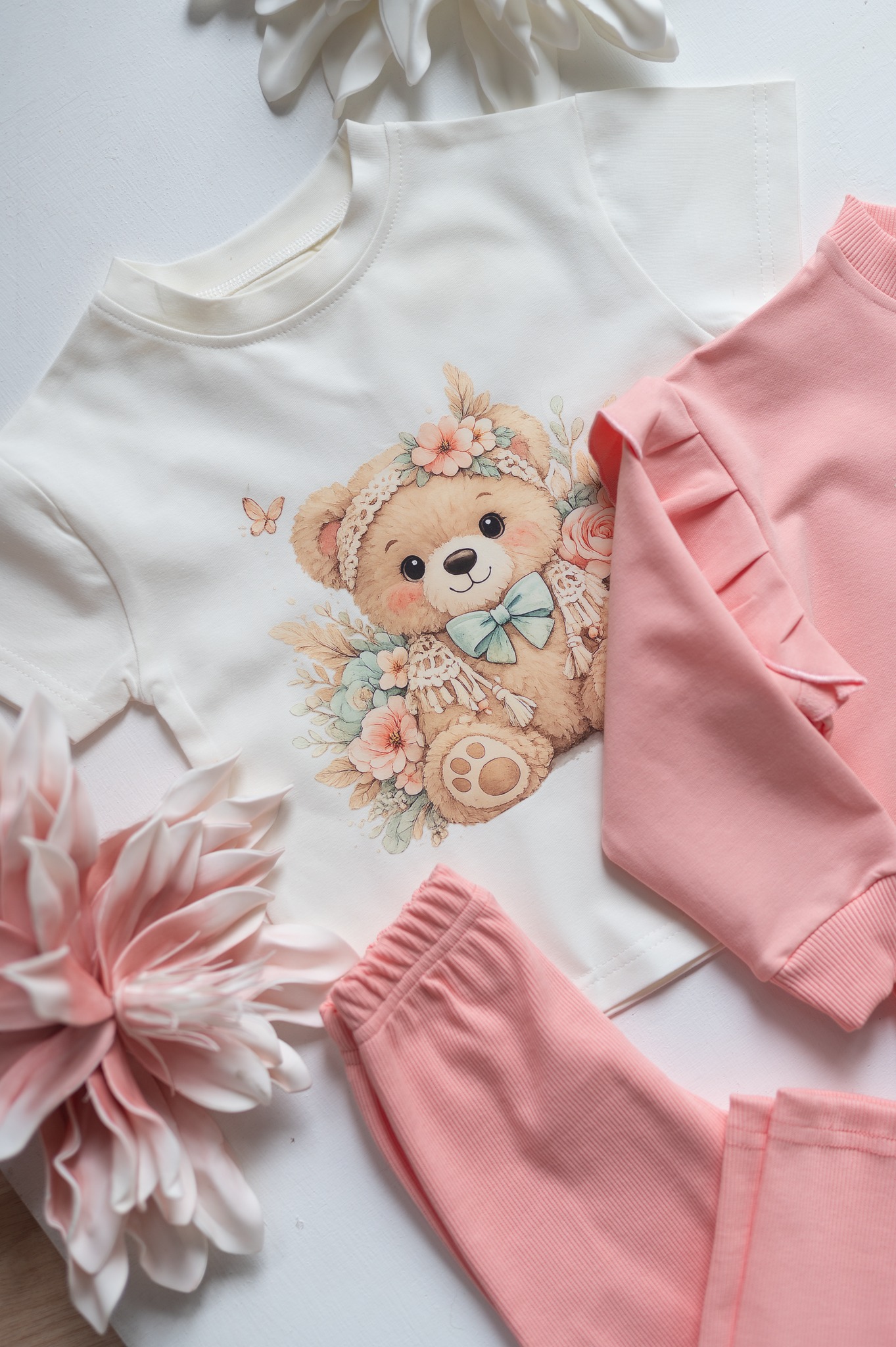 Świetne, bawełniane bluzeczki z krótkim rękawkiem dla dziewczynki. Bluzka w kolorze ecru z misiem boho polskiego producenta Mam Ten Luz.
