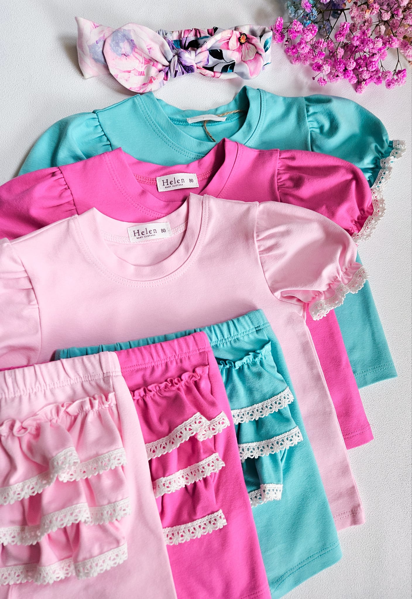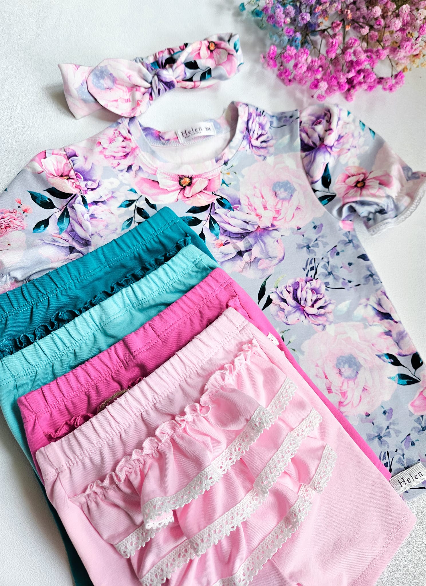 Kolarki z falbankami i koronką 80-104, z kokardą 110-122 Helen w 3 kolorach: