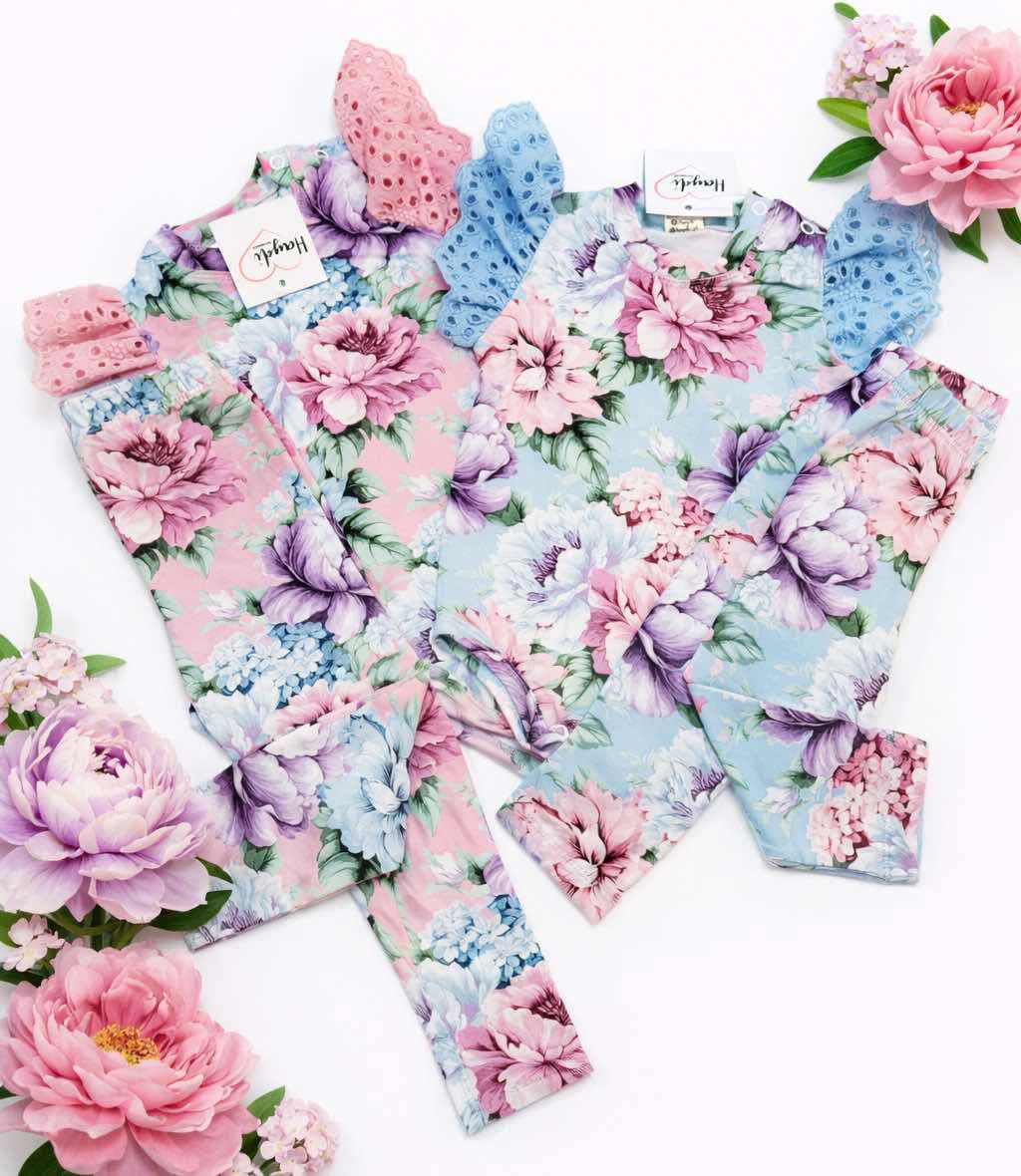 Bawełniane Legginsy dla dziewczynki kwiaty na różu. Dostępne w rozmiarach 86 – 134.