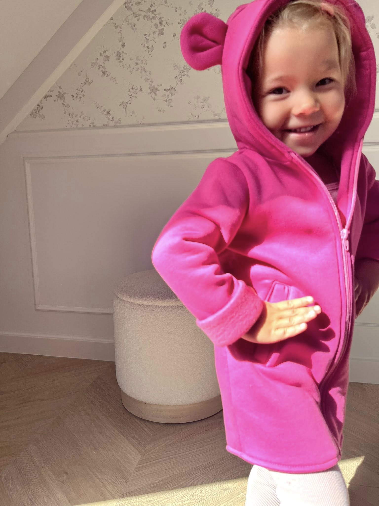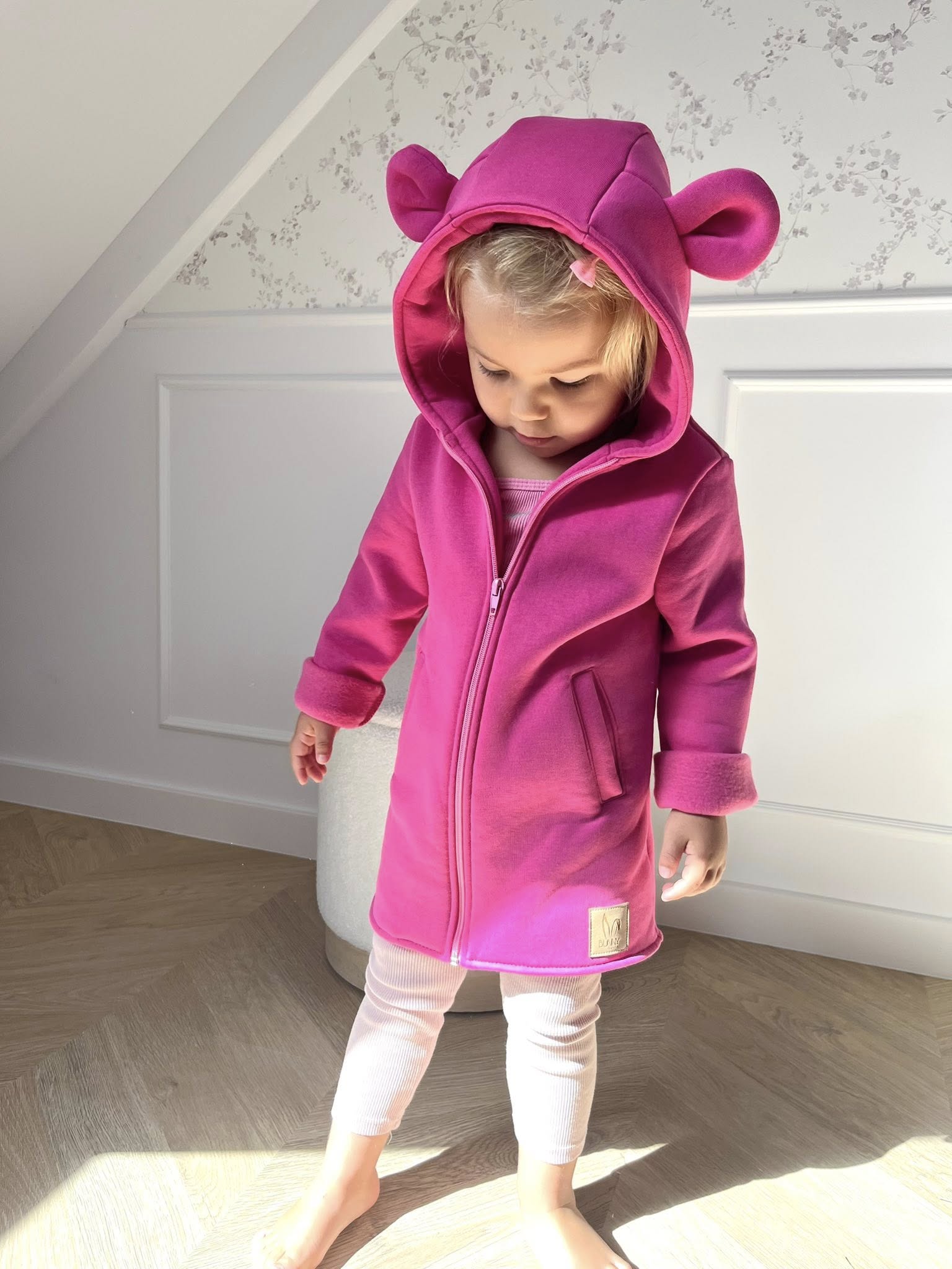 Ocieplana bluza na zamek w HITowym kolorze FUKSJA. Elementem charakterystycznym są oczywiście uszy na kapturze.