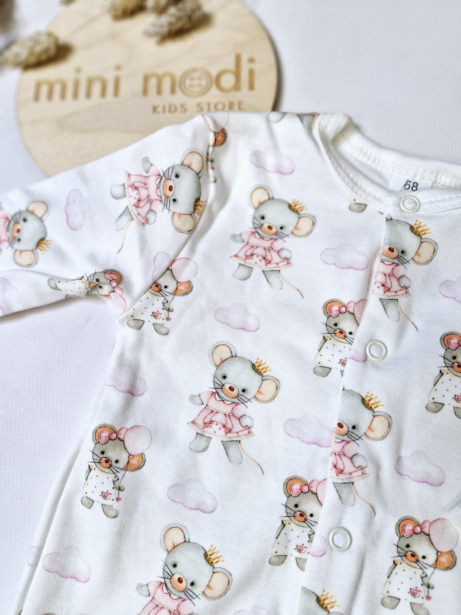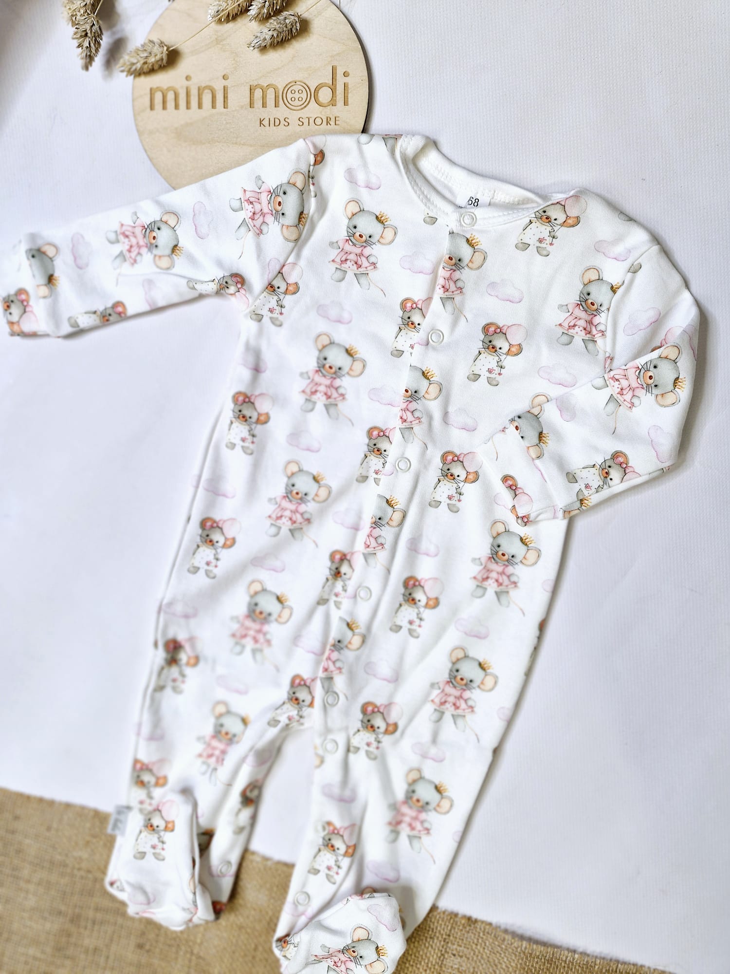 Bawełniany pajac niemowlęcy MYSZKI.