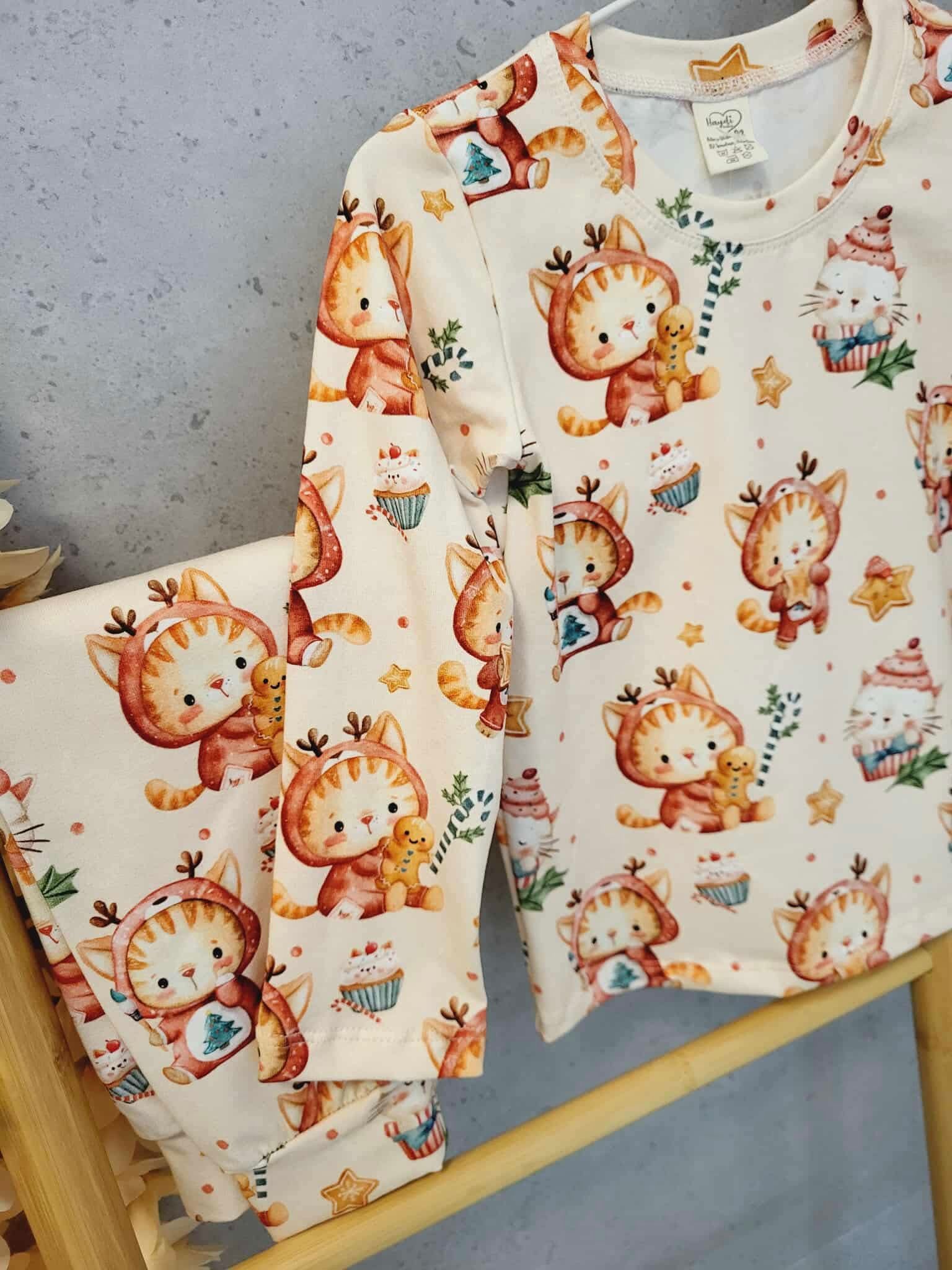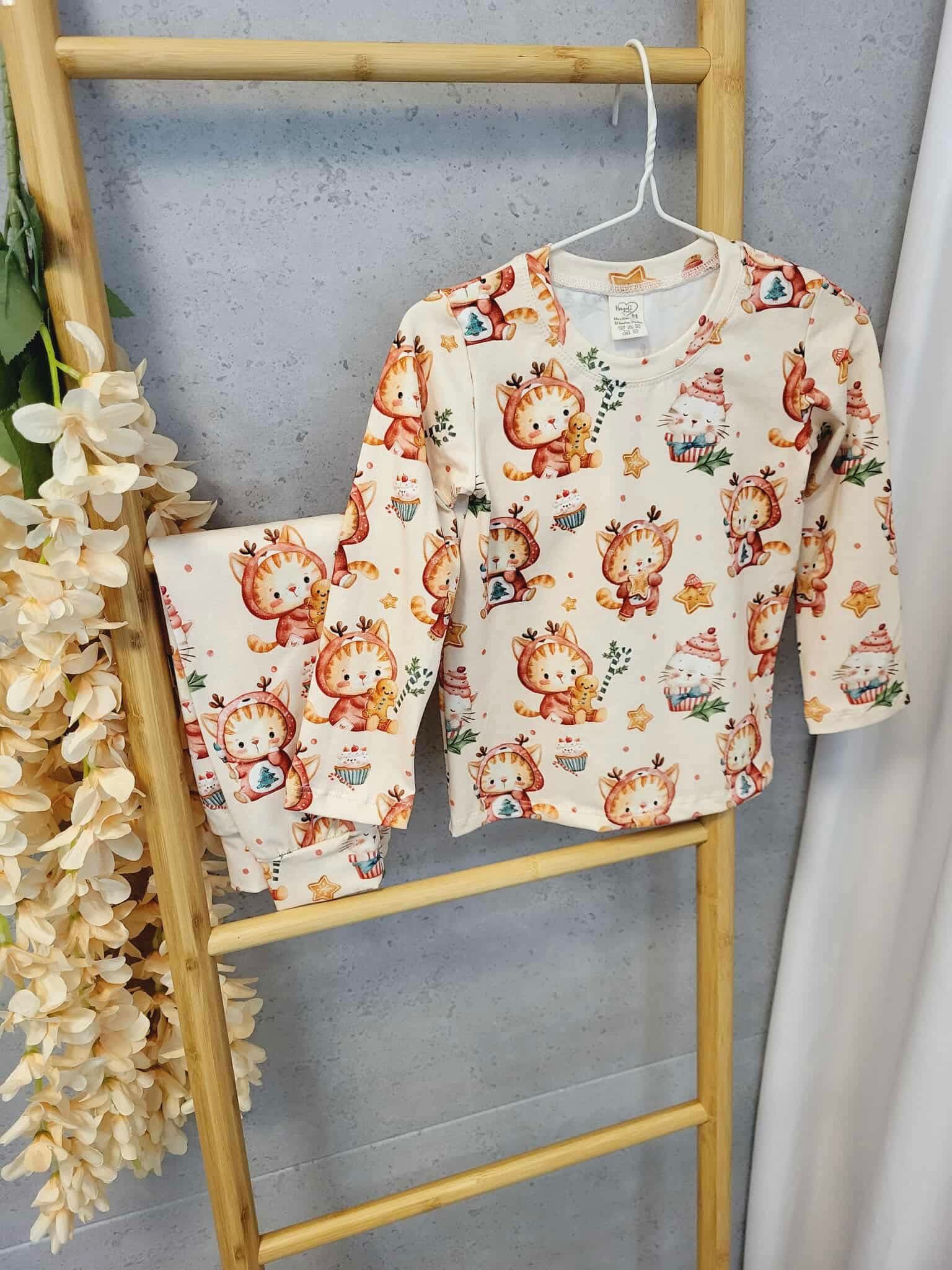 Bawełniana piżamka dla dziewczynki. Piękny, świąteczny wzór w kotki.