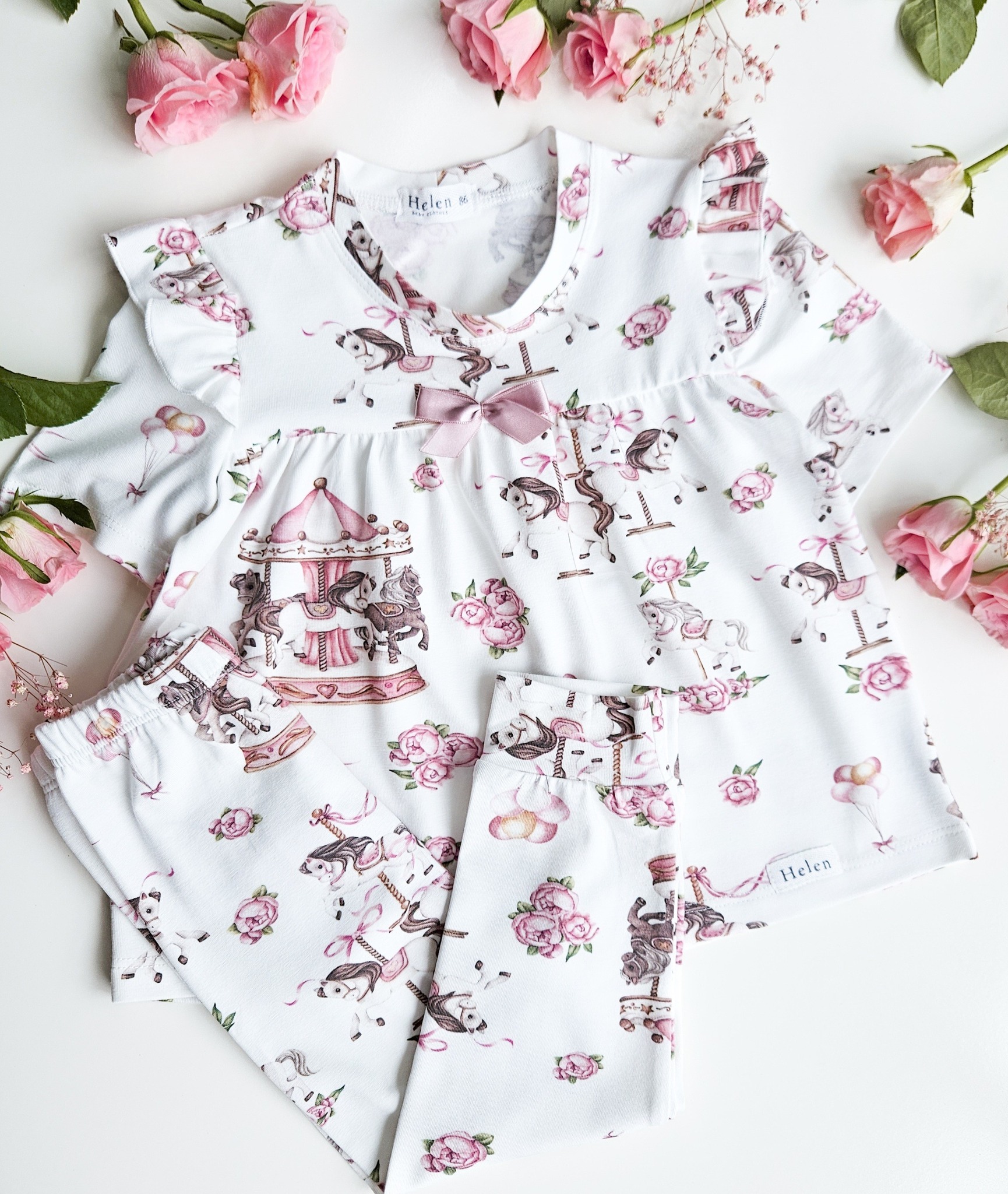 Piżamka dla dziewczynki w piękny wzór w HITowe karuzele. Komplet 2-częściowy: