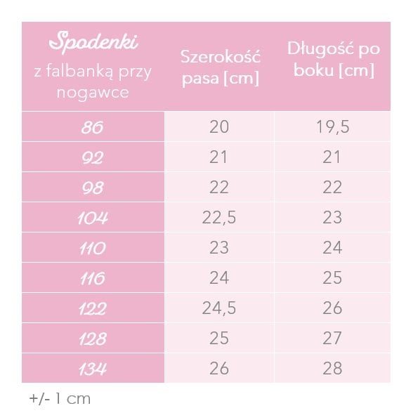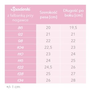 | Rozmiar | 86, 92, 98, 104, 110, 116, 122, 128, 134 |
