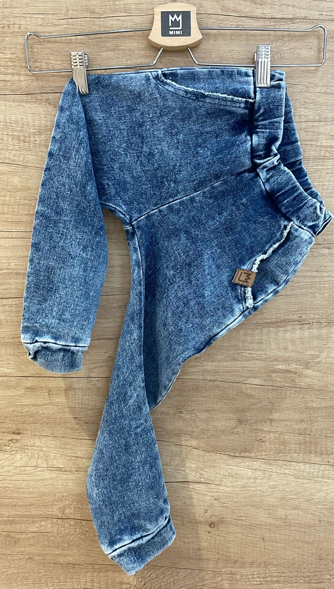 Klasyczny model spodni na gumce polskiej firmy Mimi – idealne na szczupłego chłopaka. Model dekatyzowany – jasny jeans.