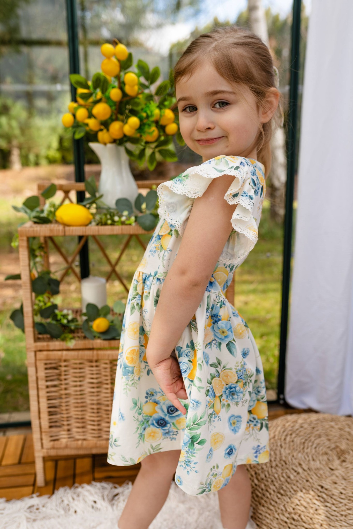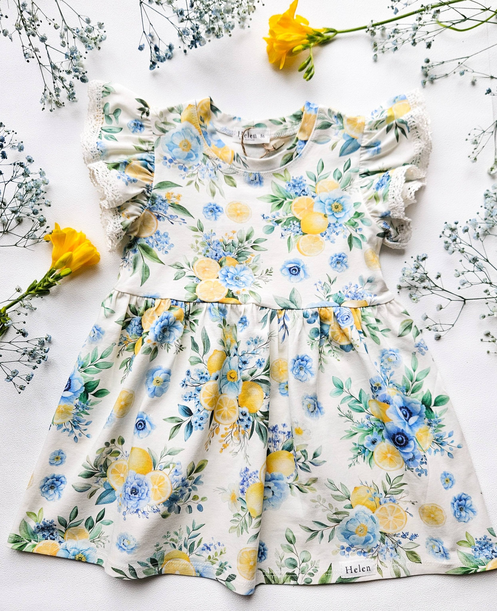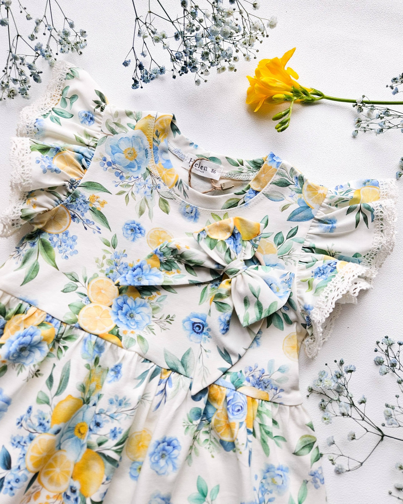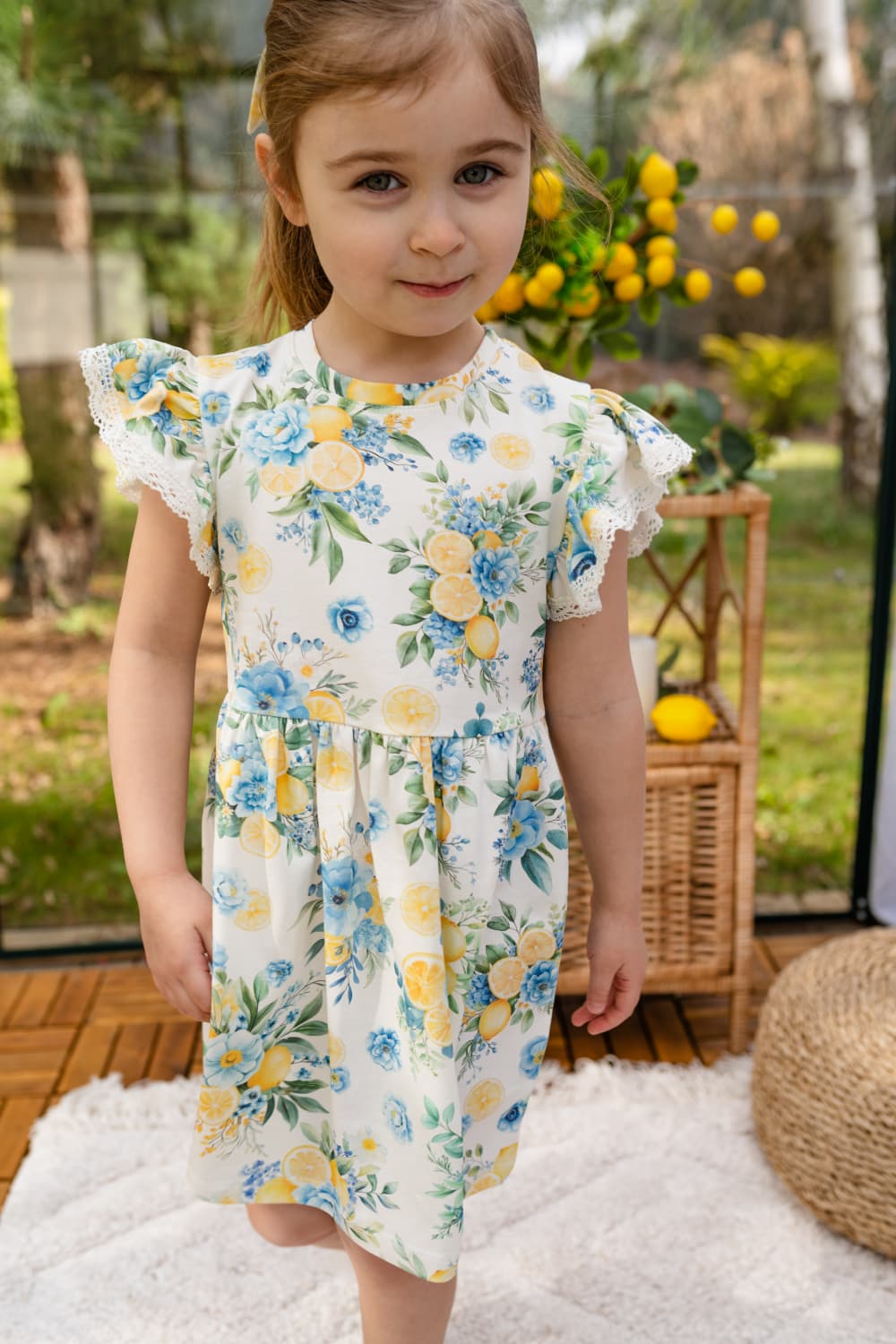 Sukieneczki z krótkim rękawkiem w owocowo – kwiatowy wzór ![]()
