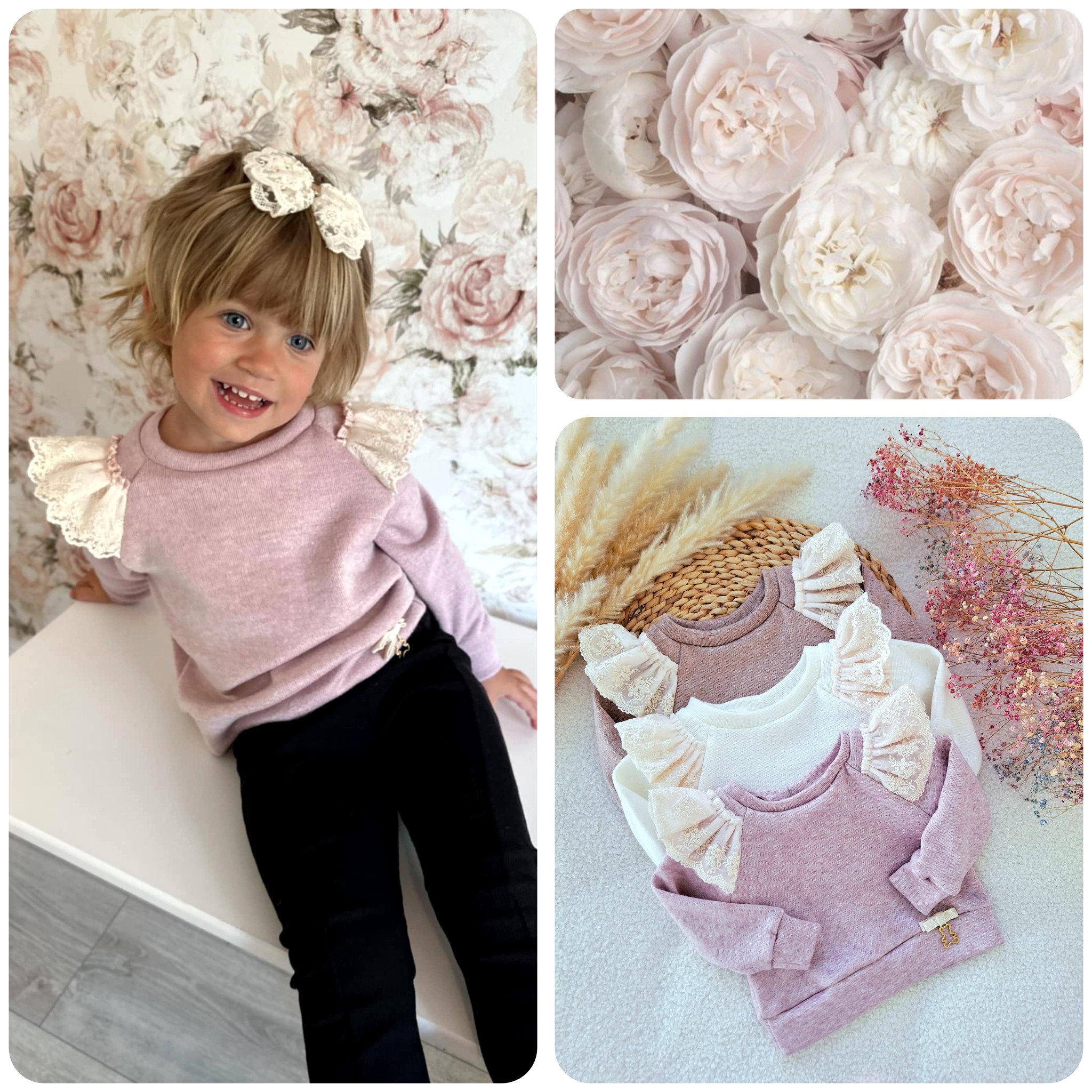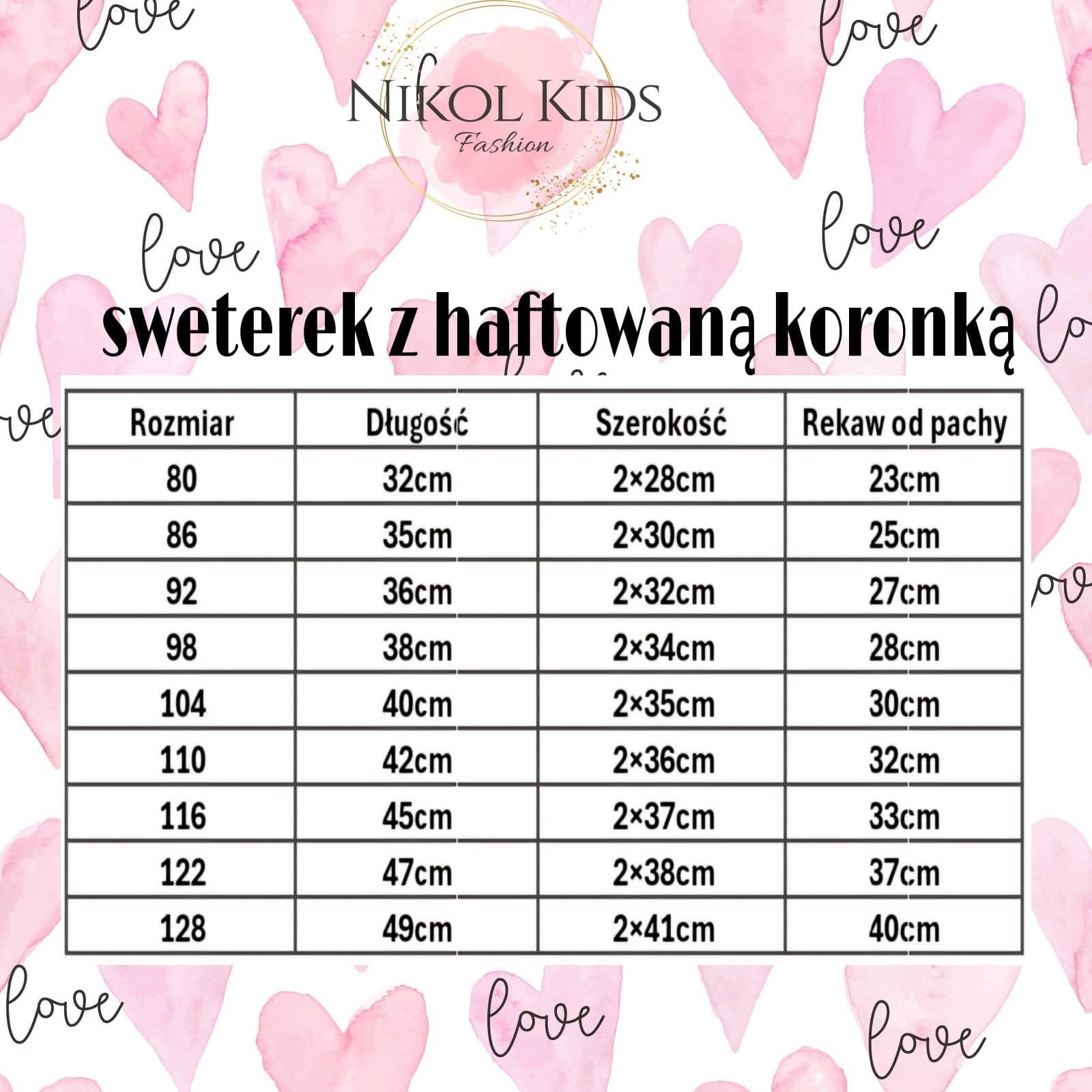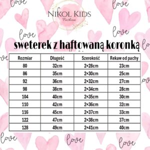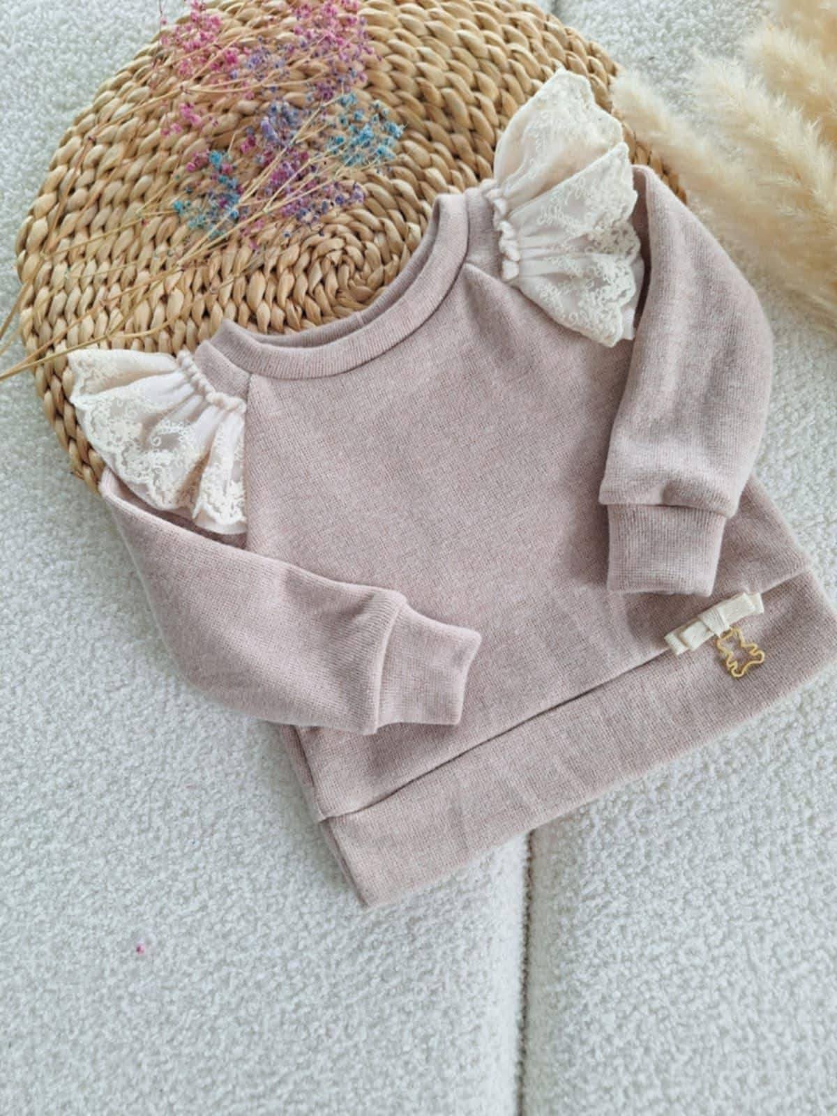 Sweterek z haftowaną koronką oraz ozdobną kokardką z 🧸. Dostępny w 3 kolorach: