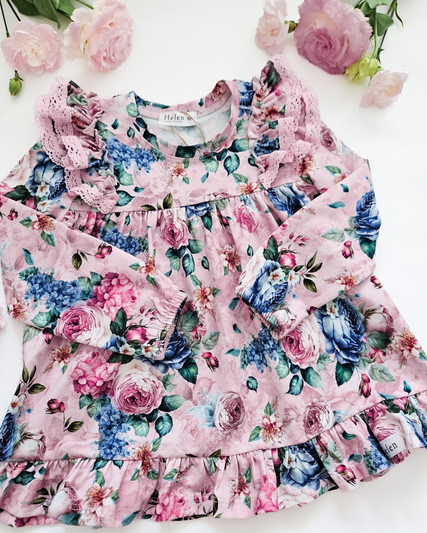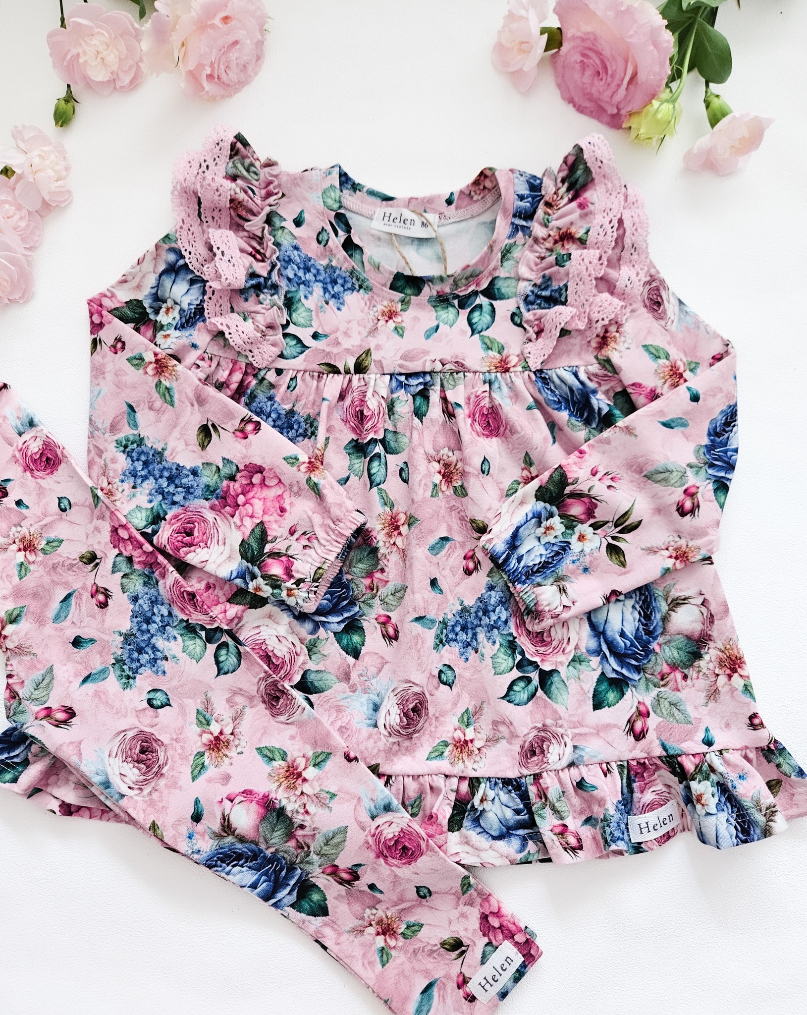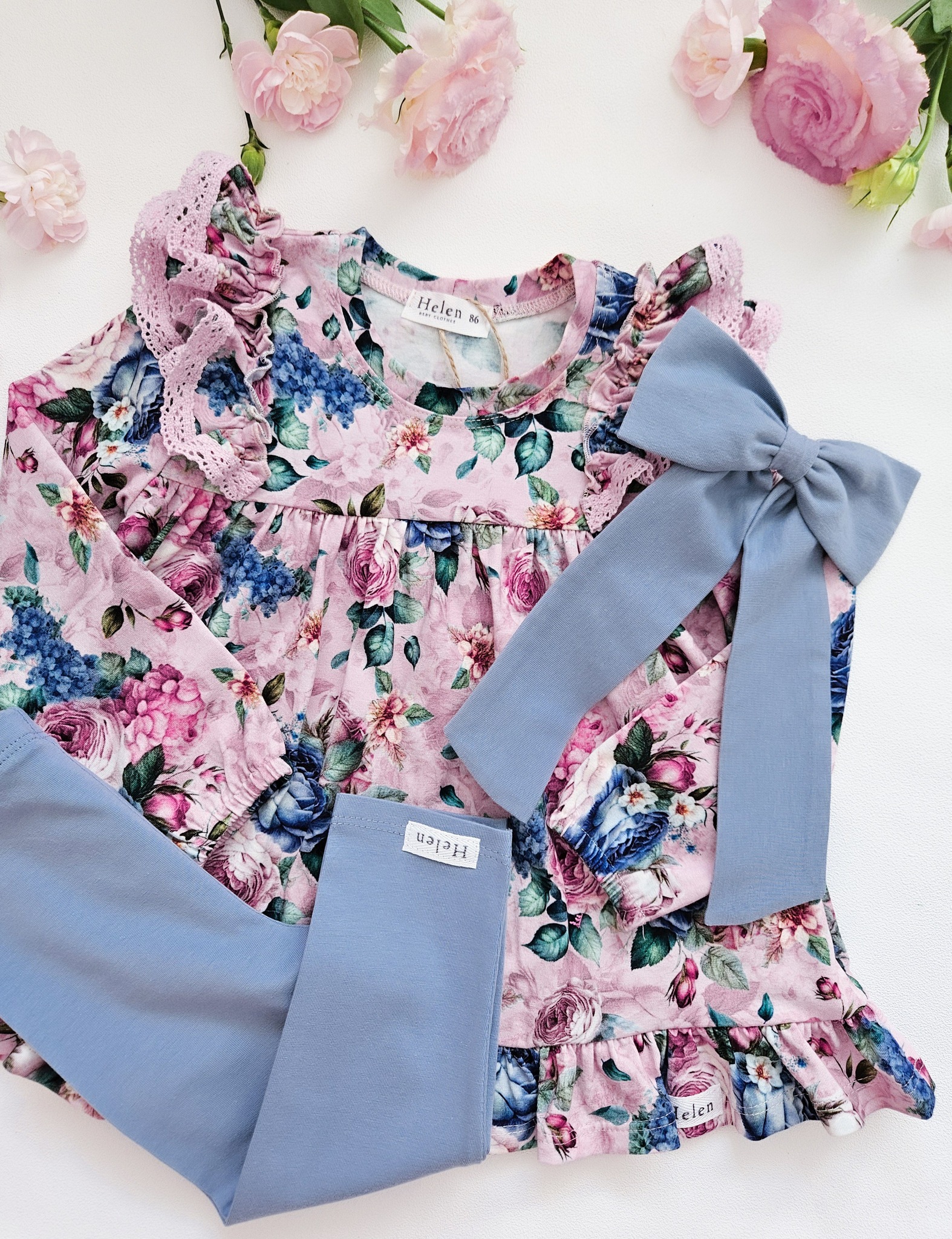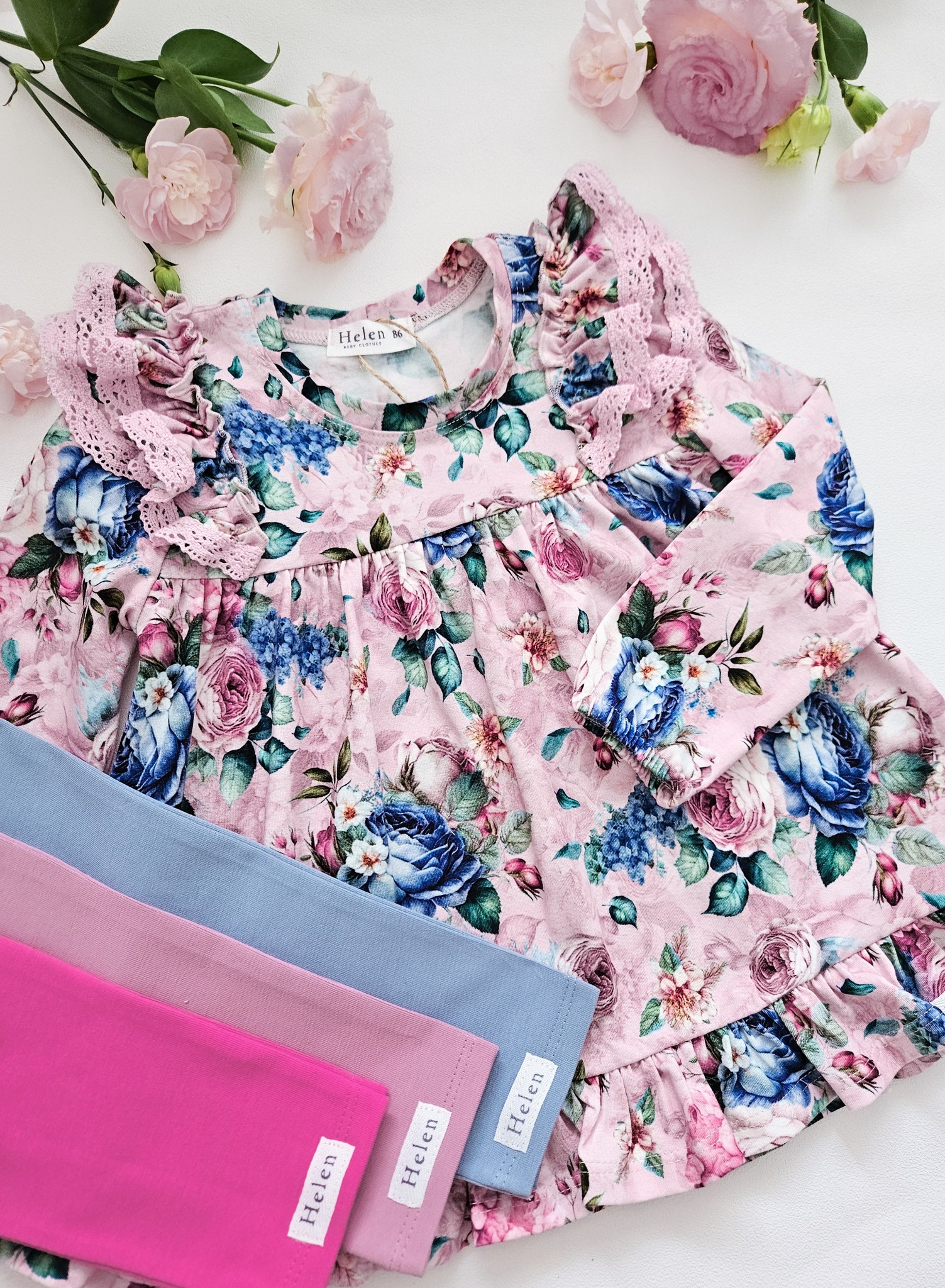 Bawełniana tunika dla dziewczynki w piękny wzór jeansowe róże